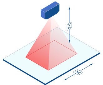 Projektionsytans storlek är beroende av avståndet från laserprojektorn till det belysta materialets yta.